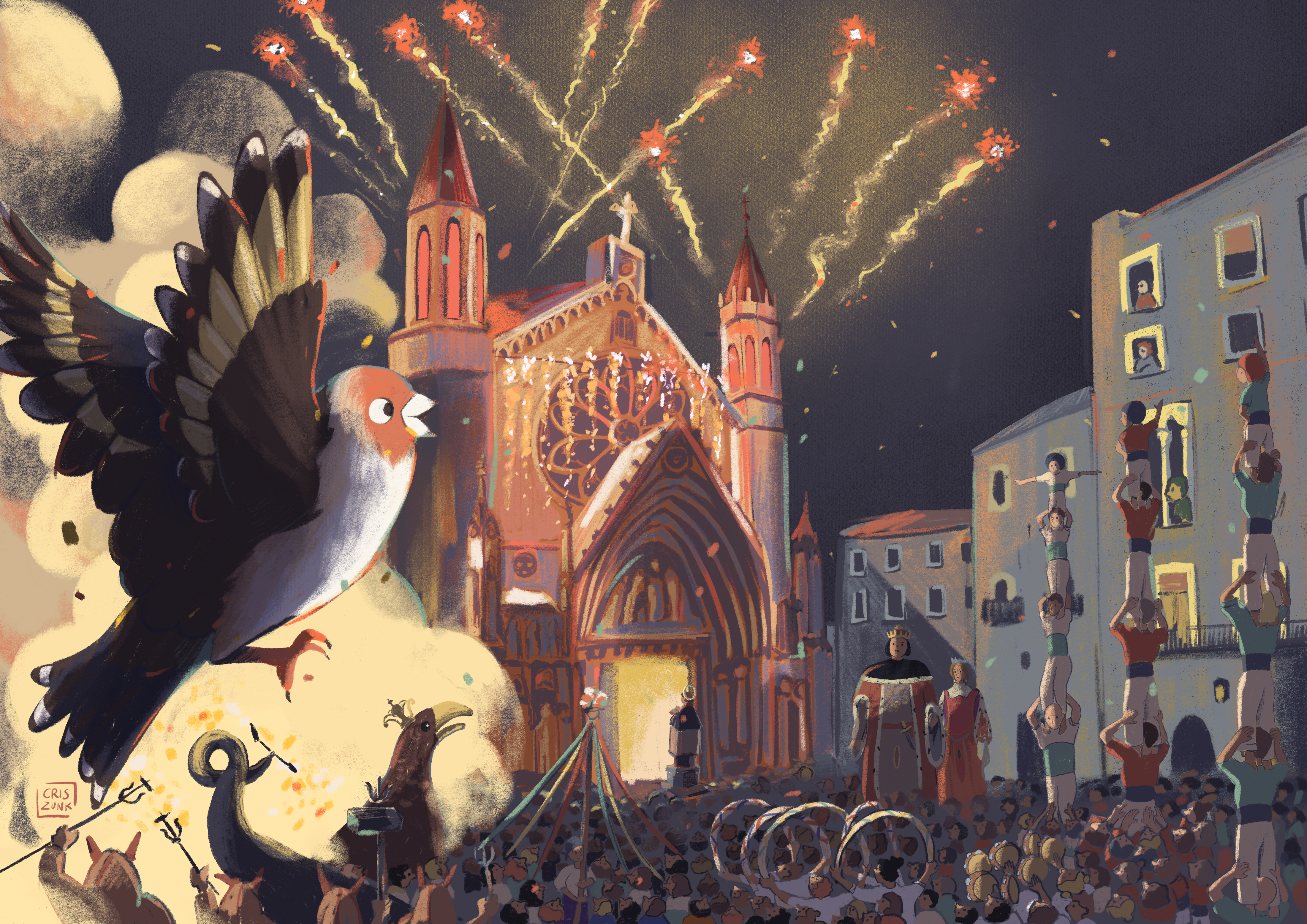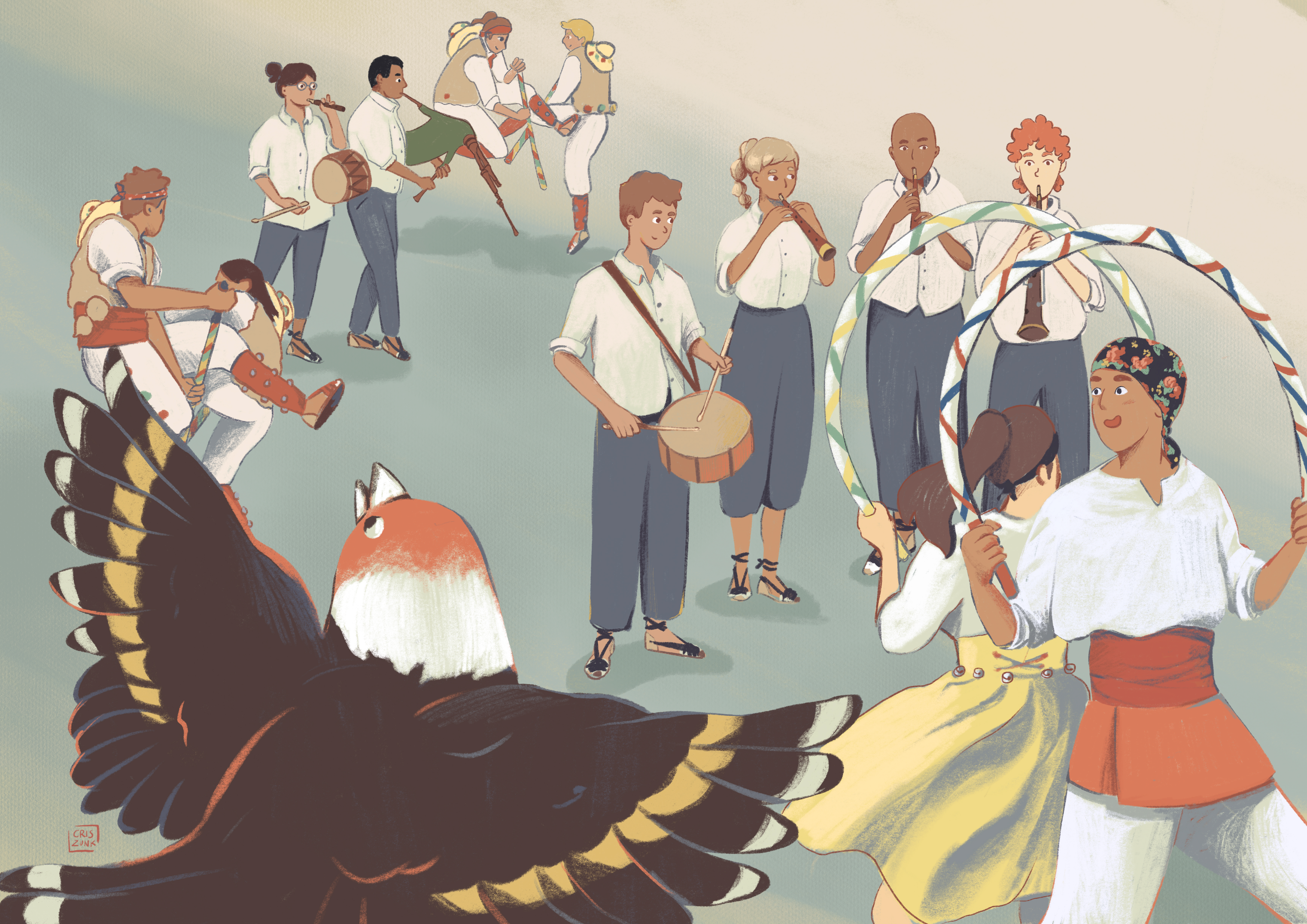 The museum team wanted to create 5 characters who participated in the Festa Major in different ways: as dancers, part of the public, medical team, musicians, etc.